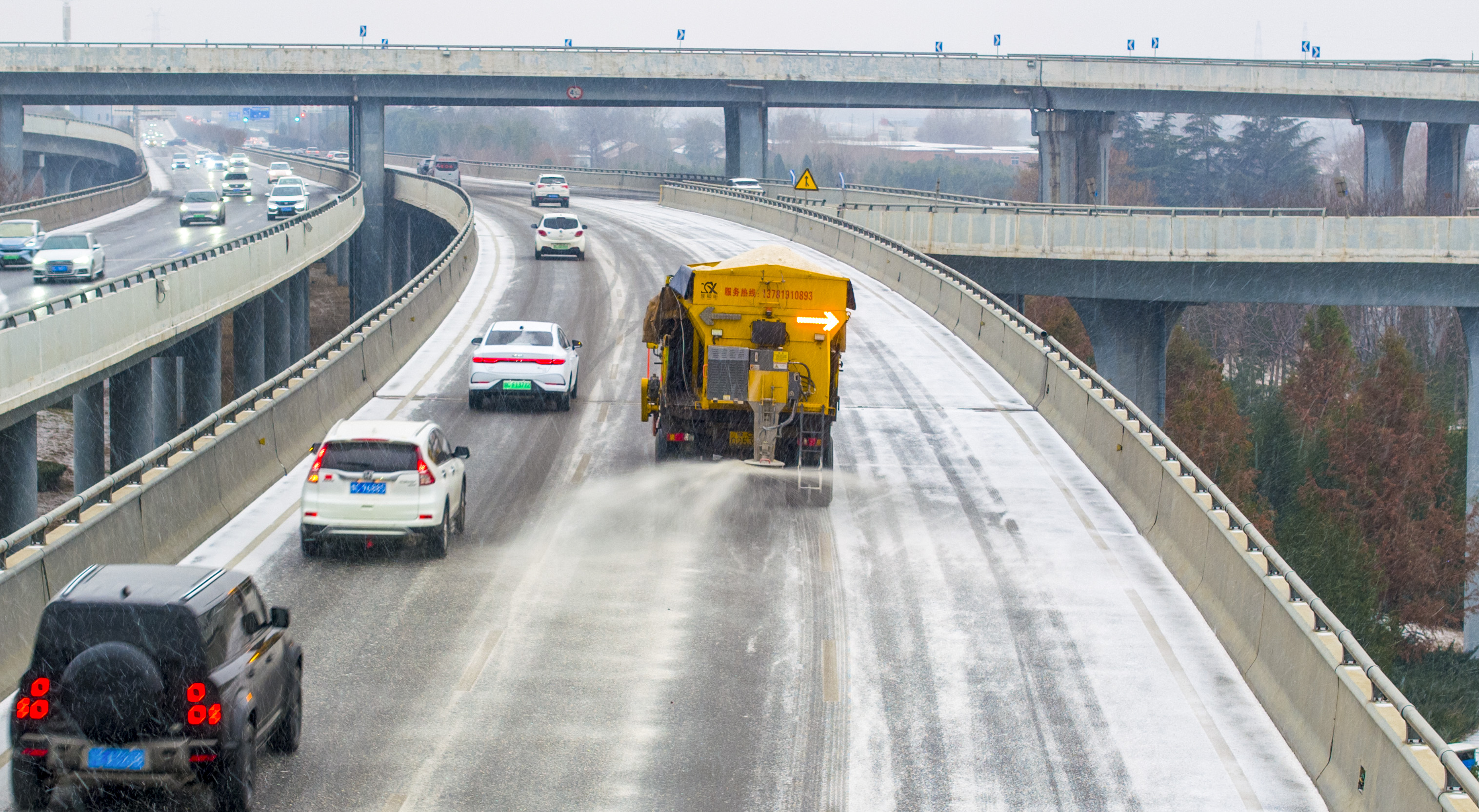 自18日起,河南多地迎来大范围低温雨雪冰冻天气。记者从河南省交通运输厅获悉,河南交通部门按照不少于应对5轮大雪的物资储备要求,全力开展除雪保通作业。全省高速公路211个应急物资储备点全面启用,217支抢险队伍、6711名养护人员整装待命;1040台多功能除雪车、327台撒布机等大型设备以及7.1万余吨融雪剂、5000余吨防滑料已配置至关键点位,确保“拉得出、用得上”。