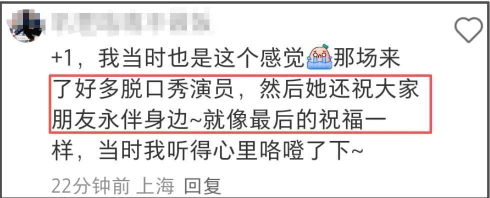其中,有IP上海的粉丝提到该场演出来了很多脱口秀演员支持,杨笠祝大家朋友永远在身边就像最后的祝福一样。而搜索上海场偶遇的话,确实有不少同行现身支持,不知是不是单纯来给杨笠捧场。